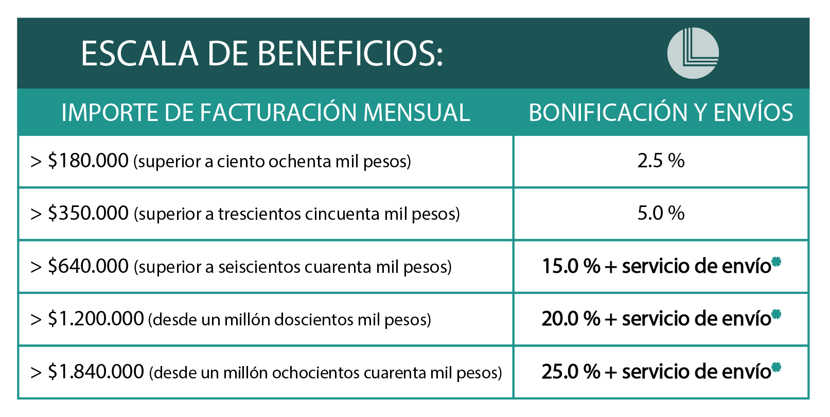 No obstante, sostenemos nuestra propuesta comercial basada en un esquema de beneficios crecientes, por volumen de consumo. Tenga en cuenta que para acceder a la bonificación, debe mantener su cuenta corriente con saldo, entre los plazos acordados, y un volumen de facturación mensual no inferior a $100.000 (cien mil pesos).