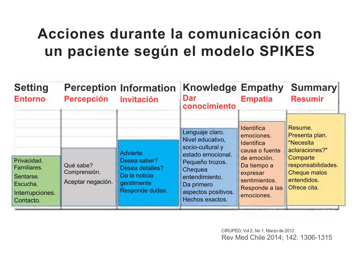 El protocolo SPIKES, probablemente el más conocido, se traduce al español con el acrónimo EPICEE.