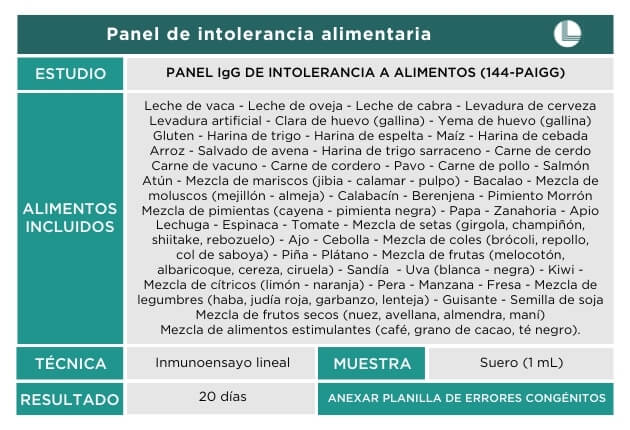 Las pruebas de laboratorio son herramientas útiles para identificar posibles desencadenantes de síntomas crónicos, y pueden ahorrar tiempo al reconocer alimentos potencialmente problemáticos, antes de probar dietas de exclusión alimentaria. Este estudio es un complemento al examen médico, en donde el profesional de la salud podrá recomendar un tratamiento y asesoramiento apropiado.