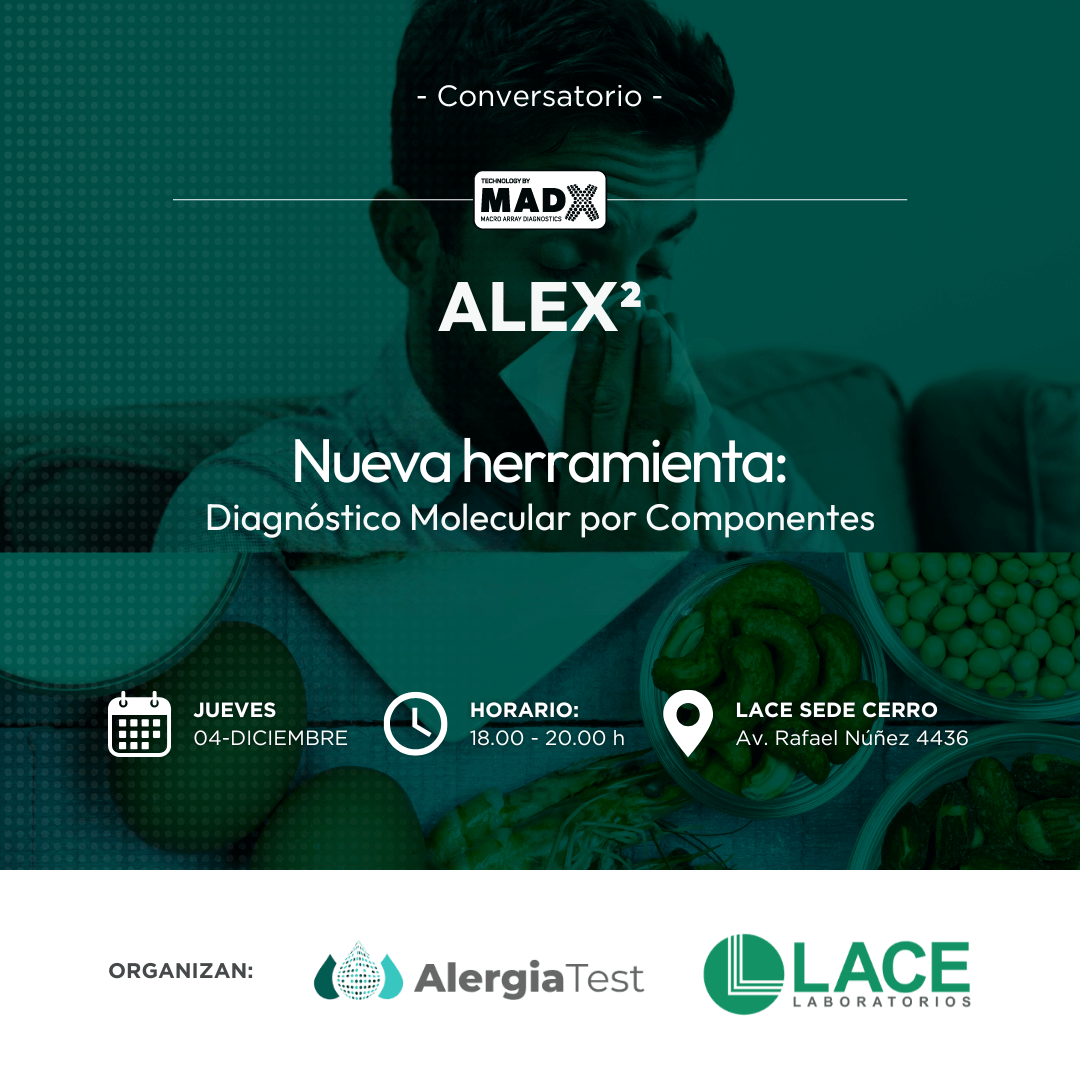 LACE Laboratorios invita a participar del conversatorio especializado donde presentaremos el panel de diagnóstico molecular ALEX² (Allergy Explorer); una herramienta que redefine la precisión en el estudio de alergias.